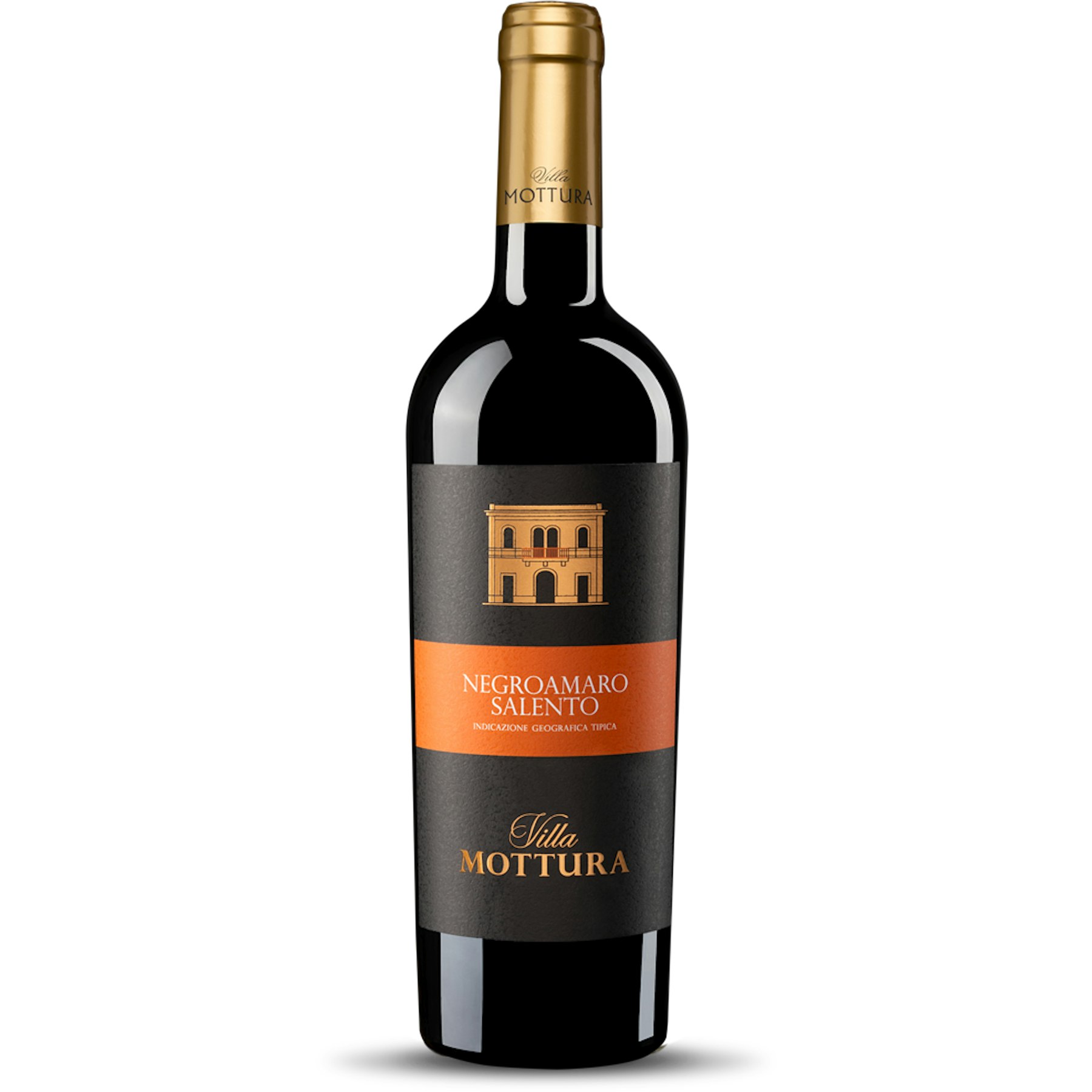 A ruby-red wine with a rich aroma, originating in the southern part of Italy from the Negroamaro grape, with a touch of black Malvasia. It matures for 6 months in French oak barrels and pairs wonderfully with roasts, red meats, game, and aged cheeses.